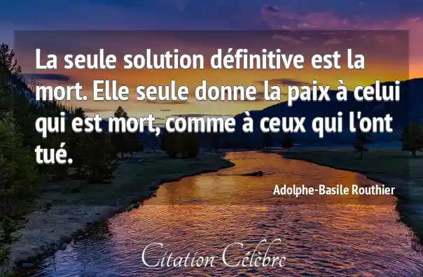 La seule solution définitive est la mort. Elle seule donne la paix à celui qui est mort, comme à ceux qui l'ont tué.
