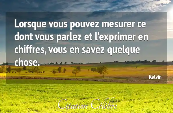 Lorsque vous pouvez mesurer ce dont vous parlez et l'exprimer en chiffres, vous en savez quelque chose.
