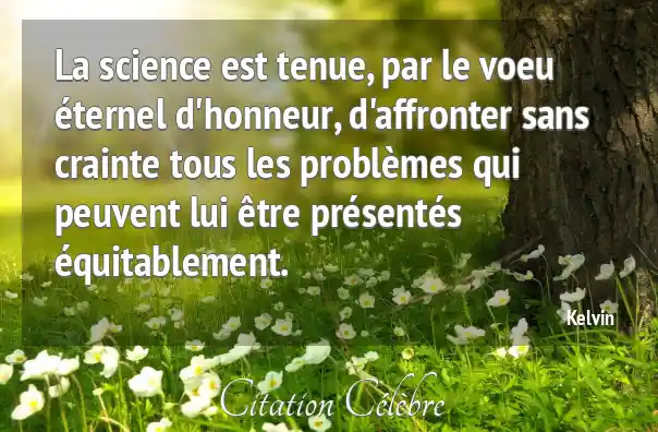 La science est tenue, par le voeu éternel d'honneur, d'affronter sans crainte tous les problèmes qui peuvent lui être présentés équitablement.