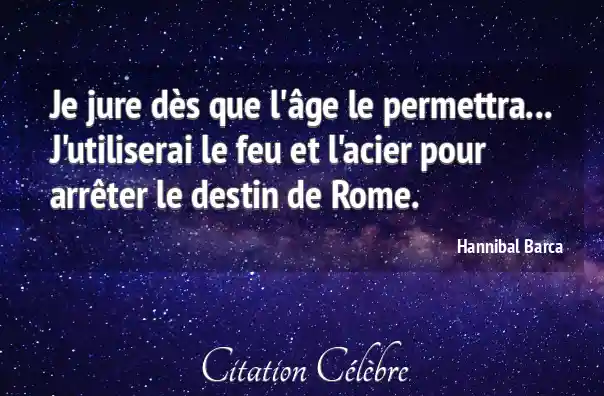 Je jure dès que l'âge le permettra... J'utiliserai le feu et l'acier pour arrêter le destin de Rome.