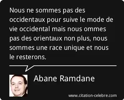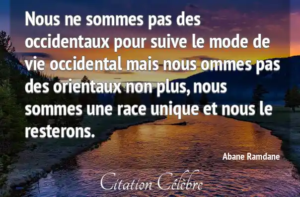 Nous ne sommes pas des occidentaux pour suive le mode de vie occidental mais nous ommes pas des orientaux non plus, nous sommes une race unique et nous le resterons.