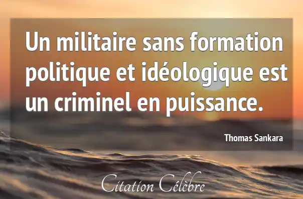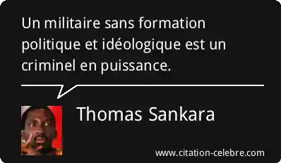 - Une autre lecture, plus spécifique au contexte de Thomas Sankara, souligne l'importance d'une idéologie révolutionnaire et anti-impérialiste. Pour lui, le militaire devait être un agent du changement social et de la libération nationale, et non un simple instrument au service d'intérêts personnels ou étrangers.