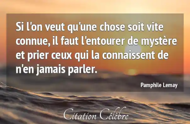 Si l'on veut qu'une chose soit vite connue, il faut l'entourer de mystère et prier ceux qui la connaissent de n'en jamais parler.