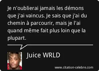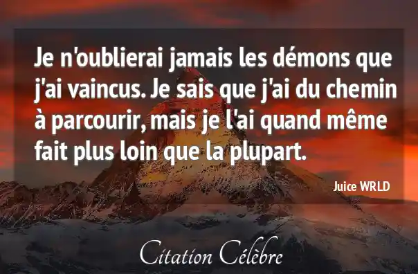 Je n'oublierai jamais les démons que j'ai vaincus. Je sais que j'ai du chemin à parcourir, mais je l'ai quand même fait plus loin que la plupart.