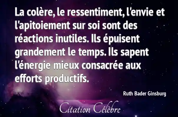 La colère, le ressentiment, l'envie et l'apitoiement sur soi sont des réactions inutiles. Ils épuisent grandement le temps. Ils sapent l'énergie mieux consacrée aux efforts productifs.