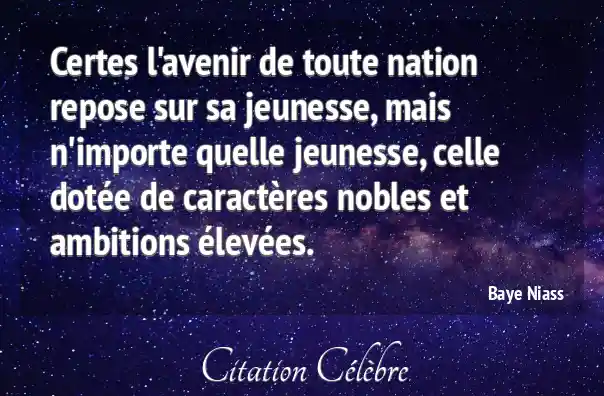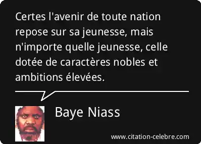 La citation s'inscrit dans le contexte de l'Afrique post-coloniale (milieu du XXe siècle). À cette époque, de nombreuses nations africaines accédaient à l'indépendance et cherchaient à bâtir un avenir prospère. Baye Niass, en tant que figure spirituelle influente et panafricaniste, exhortait la jeunesse à s'impliquer dans la construction nationale avec des valeurs morales solides, afin d'éviter les pièges de la corruption ou de l'oubli des valeurs traditionnelles et spirituelles. C'était un appel à la responsabilité des nouvelles générations face au destin de leur patrie.