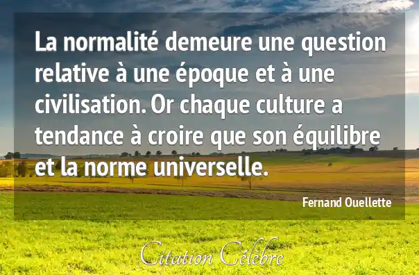 La normalité demeure une question relative à une époque et à une civilisation. Or chaque culture a tendance à croire que son équilibre et la norme universelle.