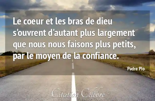 Le coeur et les bras de dieu s'ouvrent d'autant plus largement que nous nous faisons plus petits, par le moyen de la confiance.