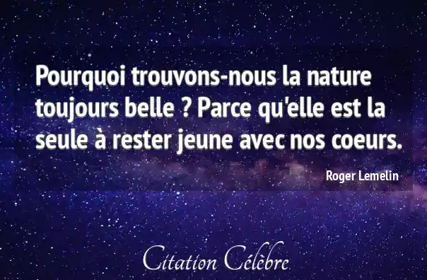 Pourquoi trouvons-nous la nature toujours belle ? Parce qu'elle est la seule à rester jeune avec nos coeurs.