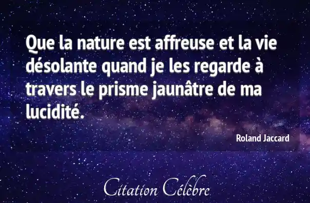 Que la nature est affreuse et la vie désolante quand je les regarde à travers le prisme jaunâtre de ma lucidité.