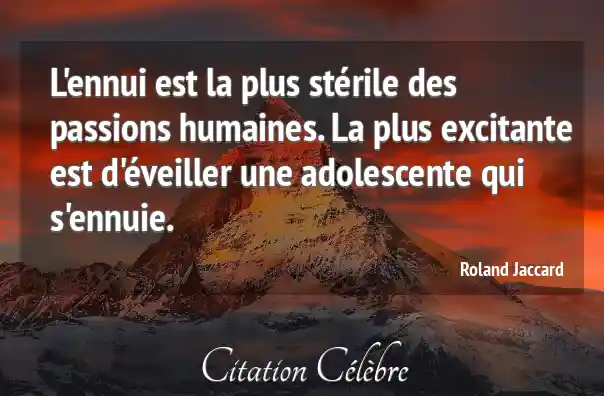 L'ennui est la plus stérile des passions humaines. La plus excitante est d'éveiller une adolescente qui s'ennuie.