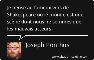Je pense au fameux vers de Shakespeare où le monde est une scène dont nous ne sommes que les mauvais acteurs.