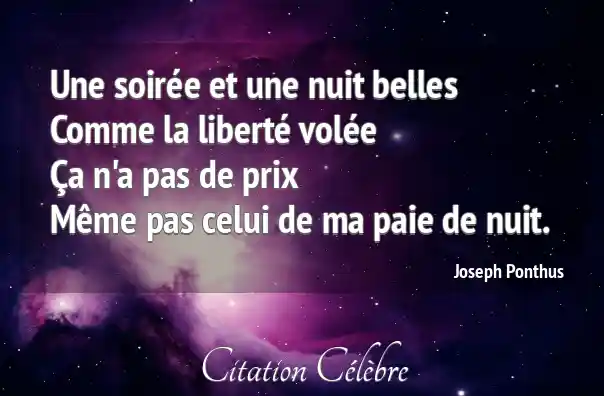 Une soirée et une nuit bellesComme la liberté voléeÇa n'a pas de prixMême pas celui de ma paie de nuit.