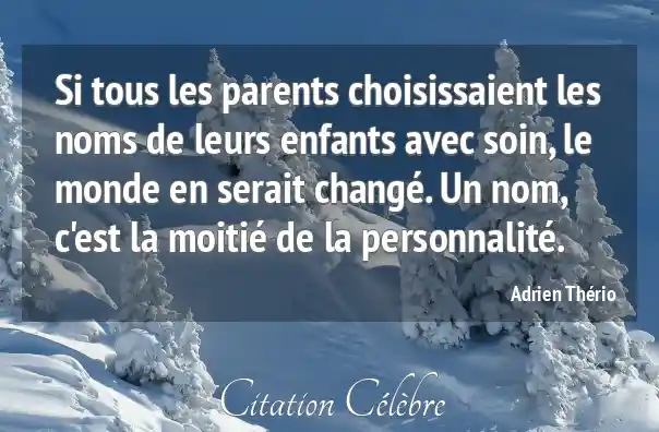 Si tous les parents choisissaient les noms de leurs enfants avec soin, le monde en serait changé. Un nom, c'est la moitié de la personnalité.