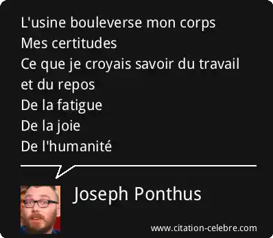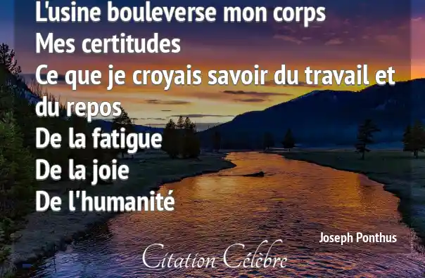 L'usine bouleverse mon corpsMes certitudesCe que je croyais savoir du travail et du reposDe la fatigueDe la joieDe l'humanité