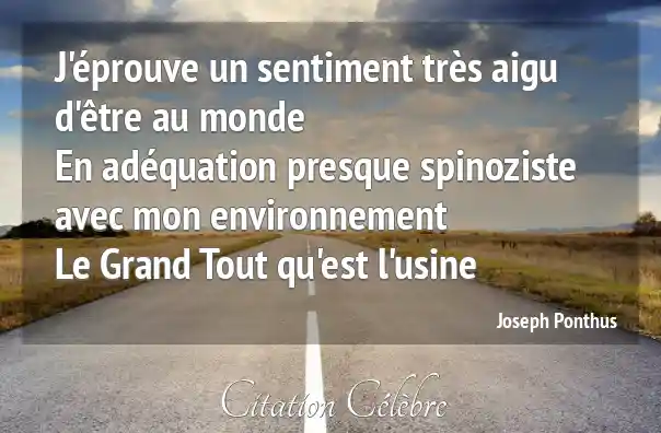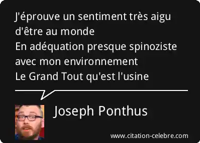 J'éprouve un sentiment très aigu d'être au mondeEn adéquation presque spinoziste avec mon environnementLe Grand Tout qu'est l'usine