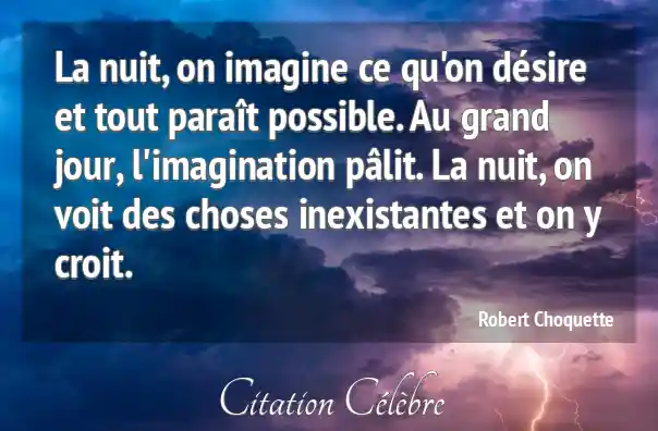 La nuit, on imagine ce qu'on désire et tout paraît possible. Au grand jour, l'imagination pâlit. La nuit, on voit des choses inexistantes et on y croit.