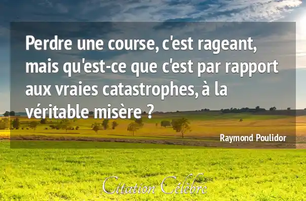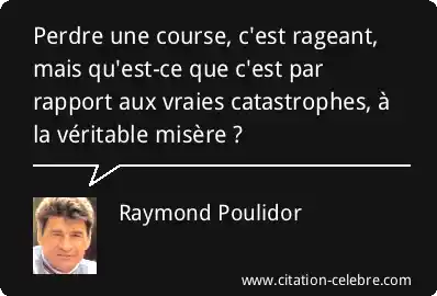 Perdre une course, c'est rageant, mais qu'est-ce que c'est par rapport aux vraies catastrophes, à la véritable misère ?