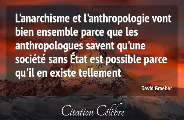 L'anarchisme et l'anthropologie vont bien ensemble parce que les anthropologues savent qu'une société sans État est possible parce qu'il en existe tellement
