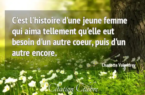C'est l'histoire d'une jeune femme qui aima tellement qu'elle eut besoin d'un autre coeur, puis d'un autre encore.