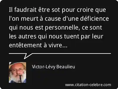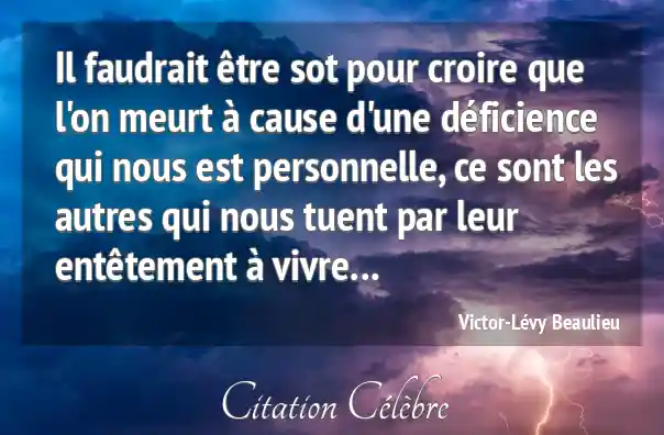 Il faudrait être sot pour croire que l'on meurt à cause d'une déficience qui nous est personnelle, ce sont les autres qui nous tuent par leur entêtement à vivre...