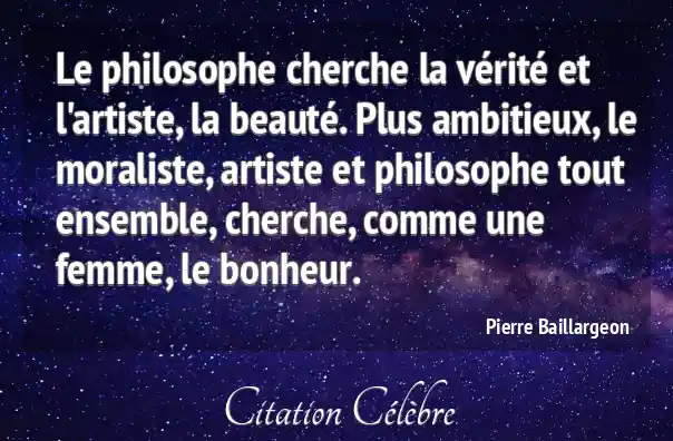 Le philosophe cherche la vérité et l'artiste, la beauté. Plus ambitieux, le moraliste, artiste et philosophe tout ensemble, cherche, comme une femme, le bonheur.