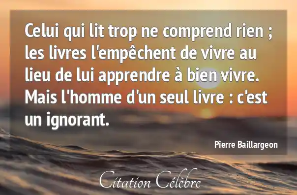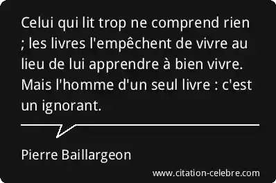 Celui qui lit trop ne comprend rien ; les livres l'empêchent de vivre au lieu de lui apprendre à bien vivre. Mais l'homme d'un seul livre : c'est un ignorant.