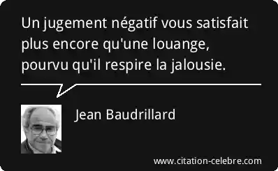 Un jugement négatif vous satisfait plus encore qu'une louange, pourvu qu'il respire la jalousie.