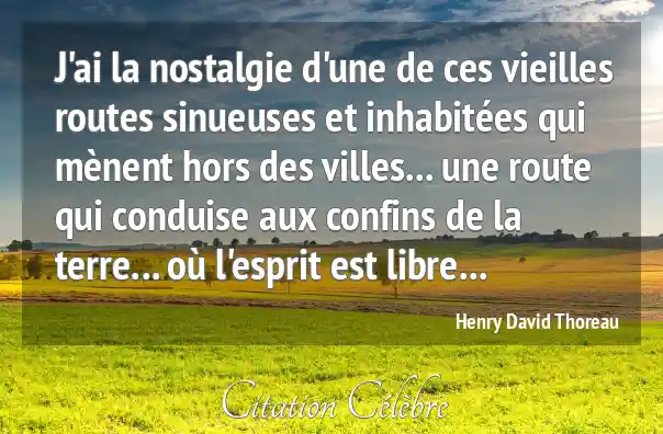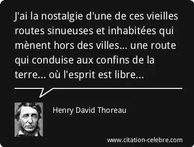 J'ai la nostalgie d'une de ces vieilles routes sinueuses et inhabitées qui mènent hors des villes... une route qui conduise aux confins de la terre... où l'esprit est libre...