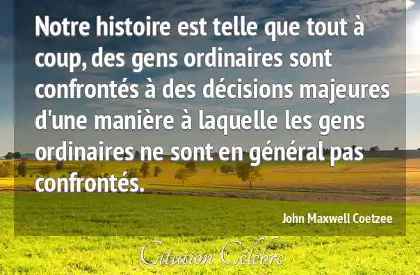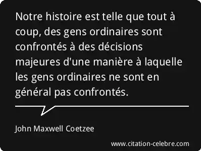 Notre histoire est telle que tout à coup, des gens ordinaires sont confrontés à des décisions majeures d'une manière à laquelle les gens ordinaires ne sont en général pas confrontés.