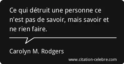 Ce qui détruit une personne ce n'est pas de savoir, mais savoir et ne rien faire.
