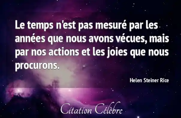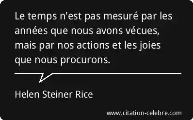 Le temps n'est pas mesuré par les années que nous avons vécues, mais par nos actions et les joies que nous procurons.