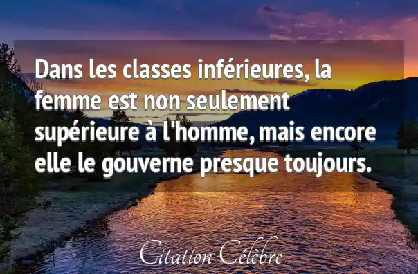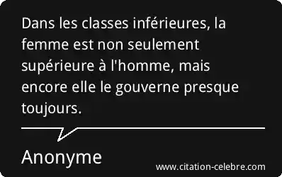 Dans les classes inférieures, la femme est non seulement supérieure à l'homme, mais encore elle le gouverne presque toujours.