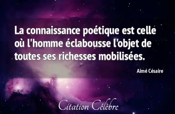 La connaissance poétique est celle où l'homme éclabousse l'objet de toutes ses richesses mobilisées.