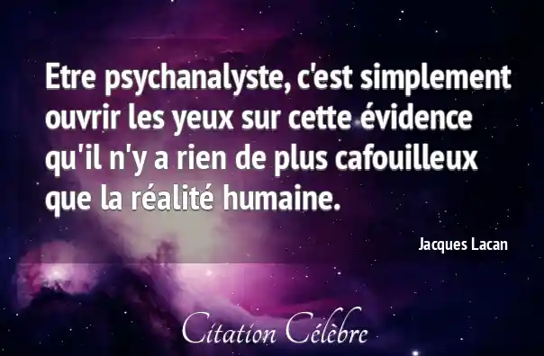 Etre psychanalyste, c'est simplement ouvrir les yeux sur cette évidence qu'il n'y a rien de plus cafouilleux que la réalité humaine.