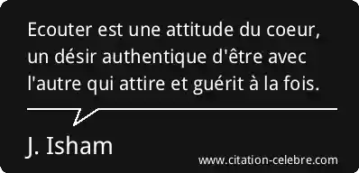 Ecouter est une attitude du coeur, un désir authentique d'être avec l'autre qui attire et guérit à la fois.