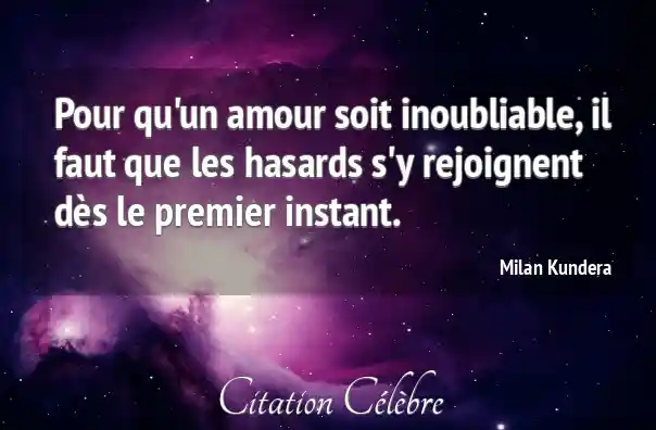 Pour qu'un amour soit inoubliable, il faut que les hasards s'y rejoignent dès le premier instant.