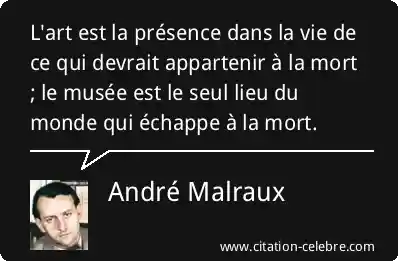 L'art est la présence dans la vie de ce qui devrait appartenir à la mort ; le musée est le seul lieu du monde qui échappe à la mort.
