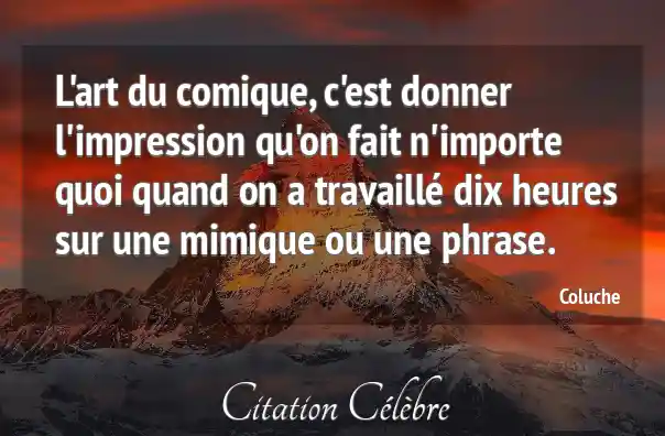 L'art du comique, c'est donner l'impression qu'on fait n'importe quoi quand on a travaillé dix heures sur une mimique ou une phrase.