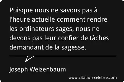 Puisque nous ne savons pas à l'heure actuelle comment rendre les ordinateurs sages, nous ne devons pas leur confier de tâches demandant de la sagesse.