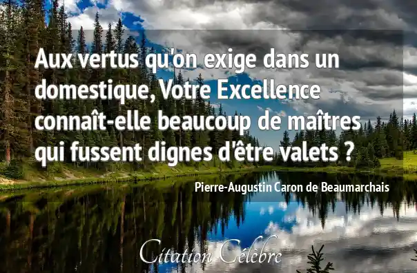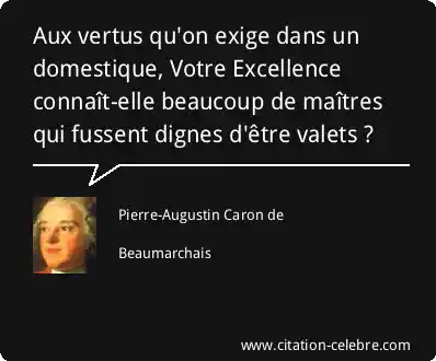Aux vertus qu'on exige dans un domestique, Votre Excellence connaît-elle beaucoup de maîtres qui fussent dignes d'être valets ?