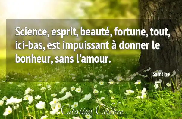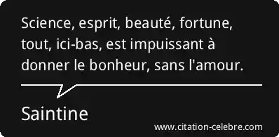 Science, esprit, beauté, fortune, tout, ici-bas, est impuissant à donner le bonheur, sans l'amour.