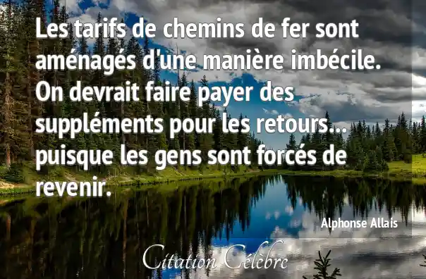 Les tarifs de chemins de fer sont aménagés d'une manière imbécile. On devrait faire payer des suppléments pour les retours... puisque les gens sont forcés de revenir.