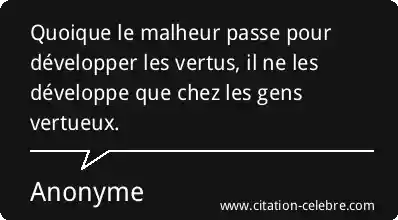 Quoique le malheur passe pour développer les vertus, il ne les développe que chez les gens vertueux.