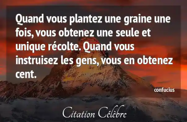 Quand vous plantez une graine une fois, vous obtenez une seule et unique récolte. Quand vous instruisez les gens, vous en obtenez cent.