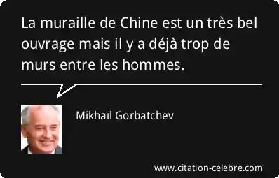 La muraille de Chine est un très bel ouvrage mais il y a déjà trop de murs entre les hommes.