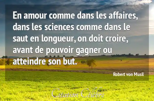 En amour comme dans les affaires, dans les sciences comme dans le saut en longueur, on doit croire, avant de pouvoir gagner ou atteindre son but.
