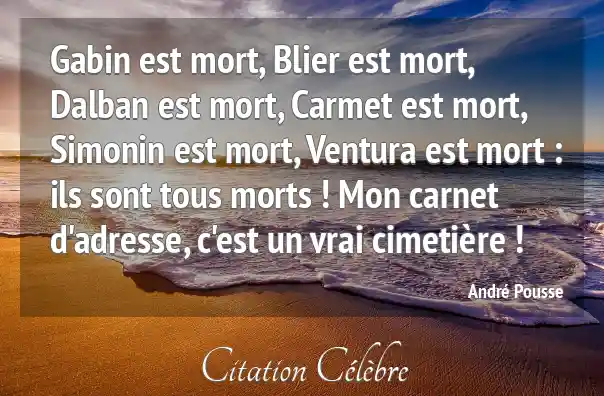 Gabin est mort, Blier est mort, Dalban est mort, Carmet est mort, Simonin est mort, Ventura est mort : ils sont tous morts ! Mon carnet d'adresse, c'est un vrai cimetière !