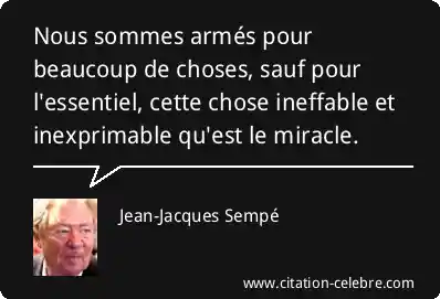 Nous sommes armés pour beaucoup de choses, sauf pour l'essentiel, cette chose ineffable et inexprimable qu'est le miracle.