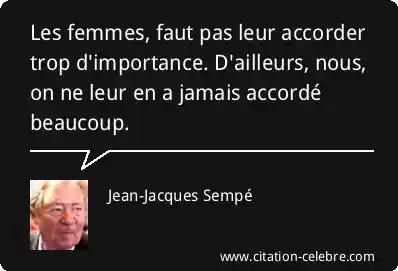 Les femmes, faut pas leur accorder trop d'importance. D'ailleurs, nous, on ne leur en a jamais accordé beaucoup.